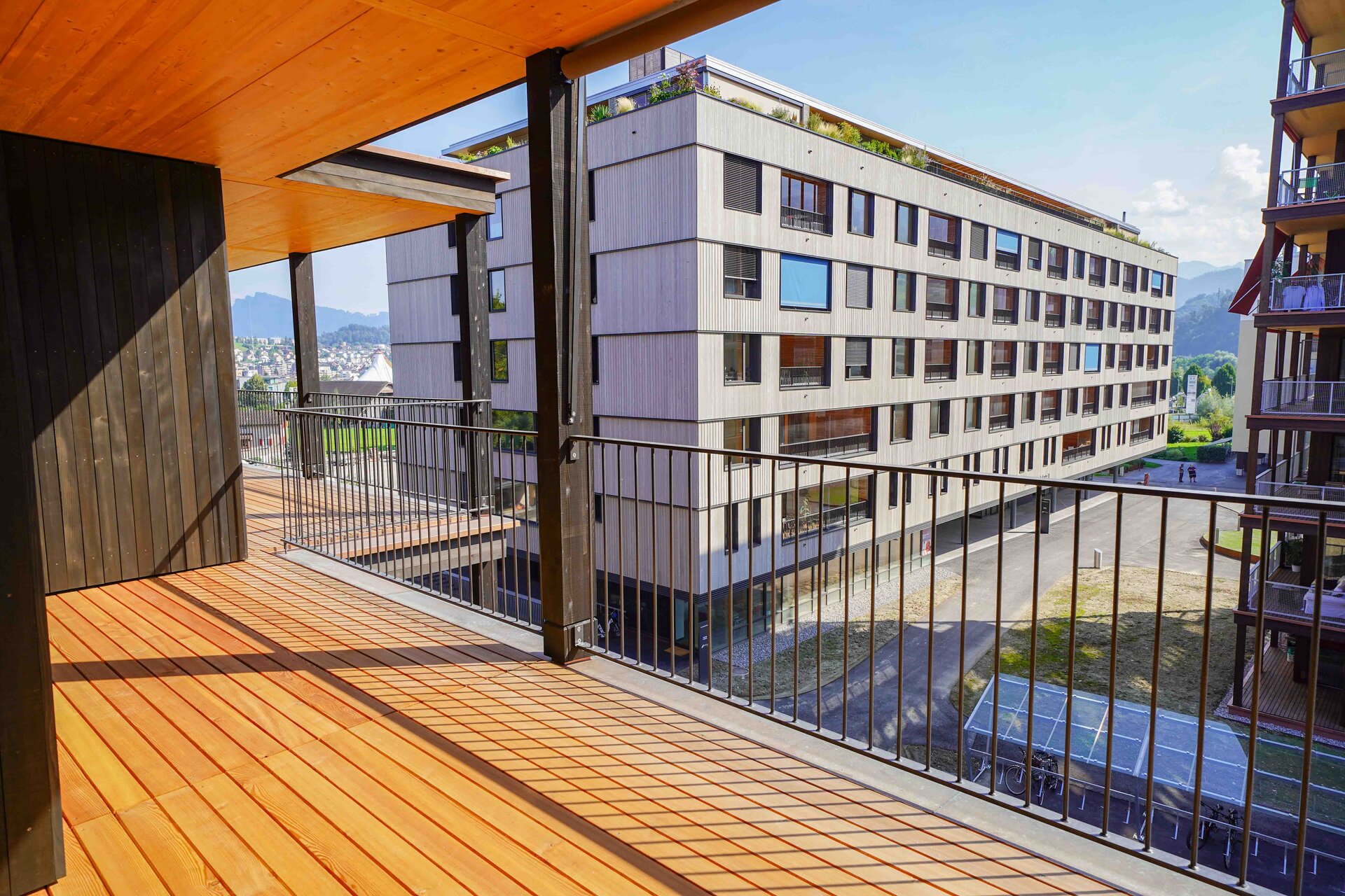 Die ersten Mieter durften bereits Ihre neuen Wohnungen im Neubau an der Horwerstrasse 90/92 beziehen. Das Gebäude ist ein reiner Holzbau und befindet sich im attraktiven Schweighof-Areal, dem modernen Quartier des Stadtteils Luzern Süd. Der Schweighof bietet viele verschiedene Wohnformen für Jung und Alt, kombiniert mit Wohnen und Arbeiten und verfügt zudem über eine grosse, autofreie Grünfläche und Begegnungszone.